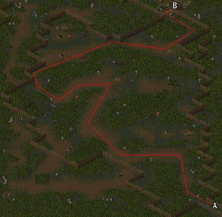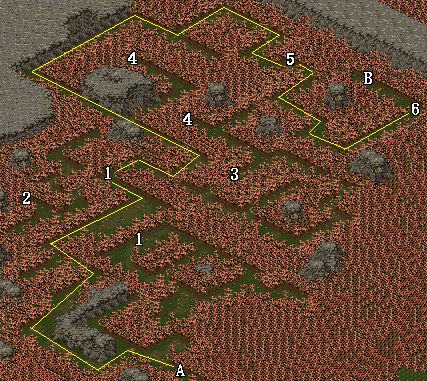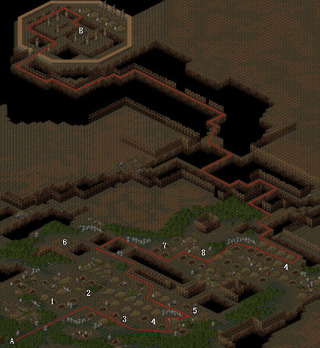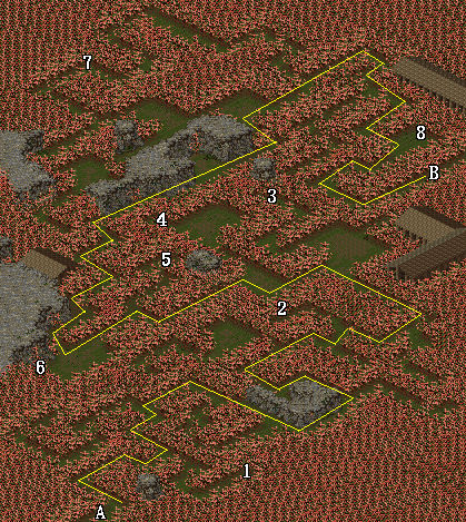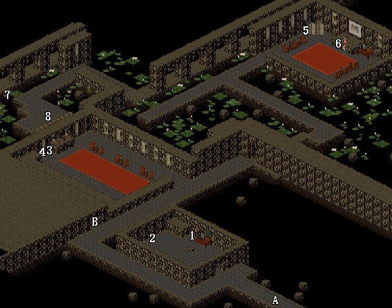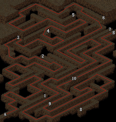 1.冰蠶蠱 2.女媧石(拿不到) 3.爆烈蠱 4.贖魂燈 5.火蠶蠱 6.引路蜂 7.銀針 8.傀儡蟲 A.桃花林東側南部 B.桃花林東側北部 |