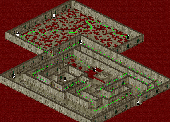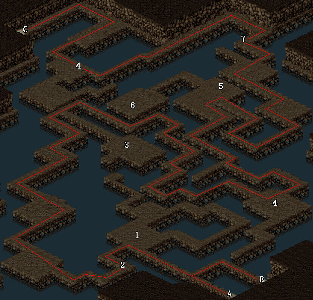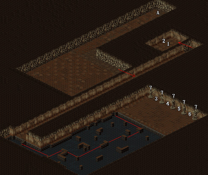1.葦蘆漂 2.魅影神靴 3.玄冥寶刀 4.冥蛇杖 5.無塵劍 6.金罡珠 7.五靈神像 A.傳送層下層傳來處 |