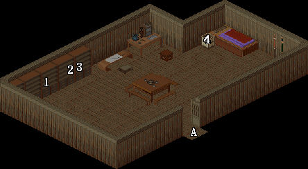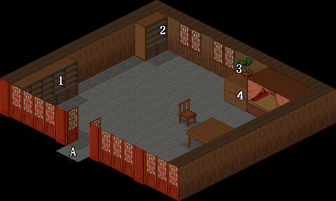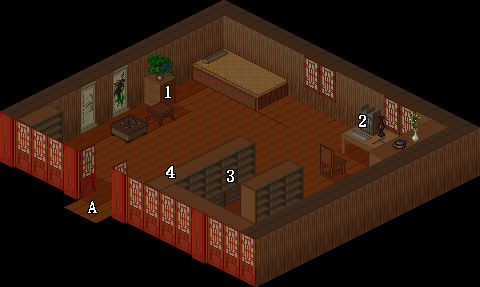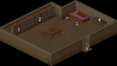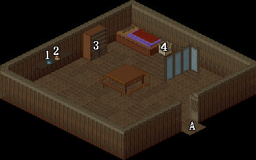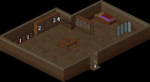 | 1.止血草 2.木鞋 3.淨衣符 4.皮帽 A.客棧大廳 |
