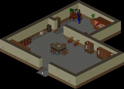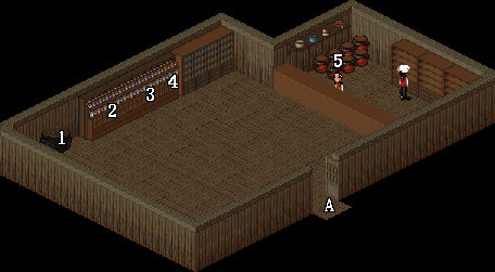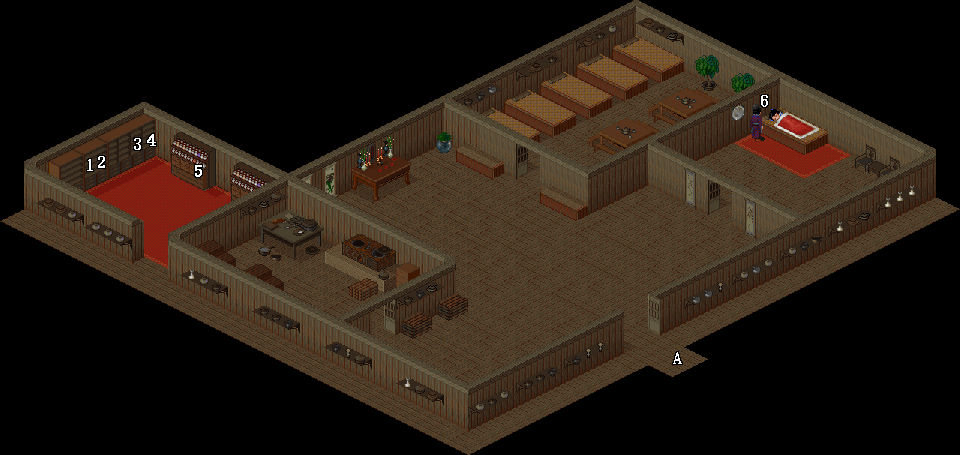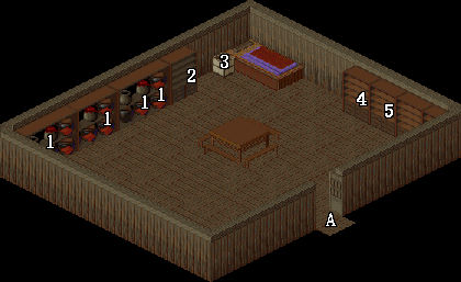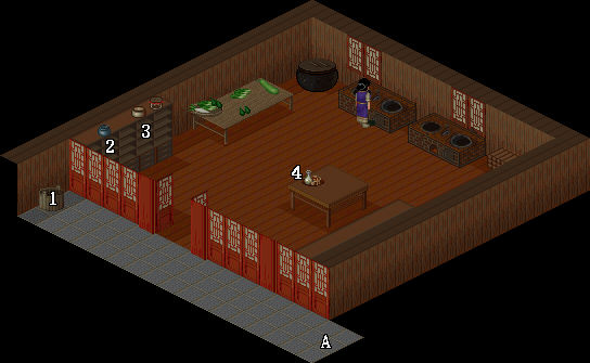 | 1.雄黃 2.醃肉 3.大蒜 4.酒菜 A.客棧大廳 |