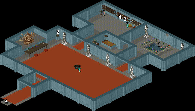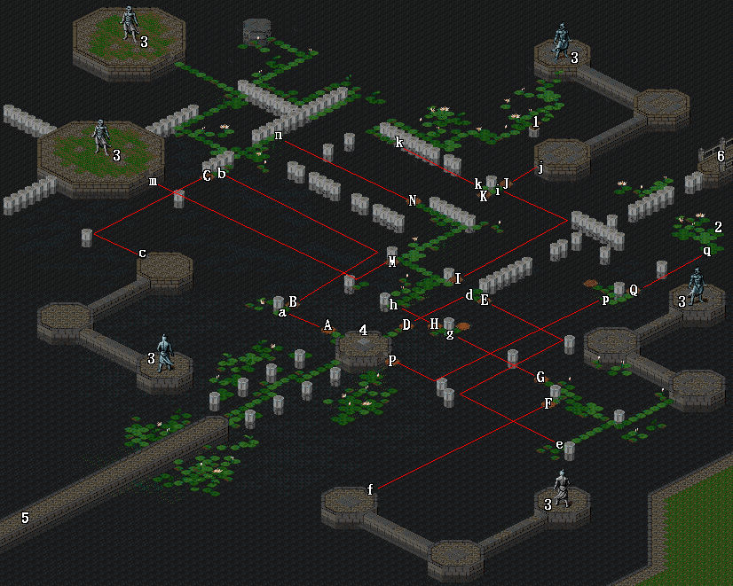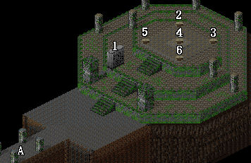 | 1.雪蓮子 2.贖魂燈 3.還魂香 4.天仙玉露 5.龍涎草 6.沖天冠 A.地下宮殿上層入口 |