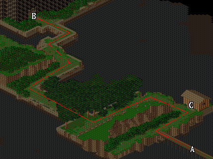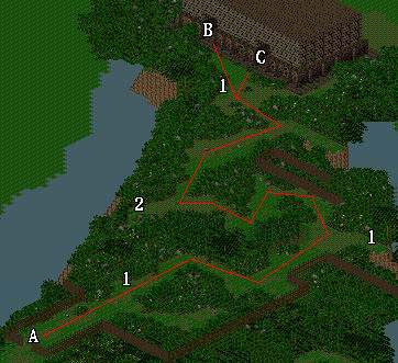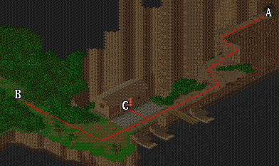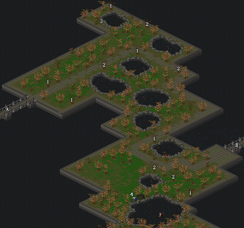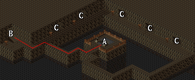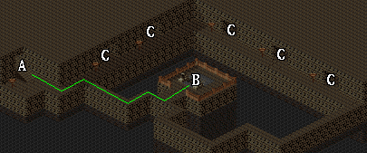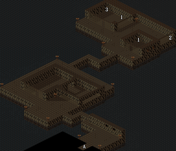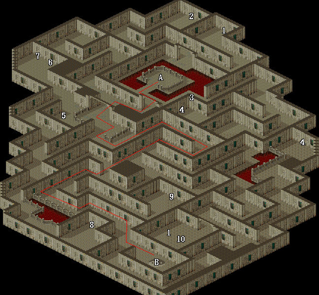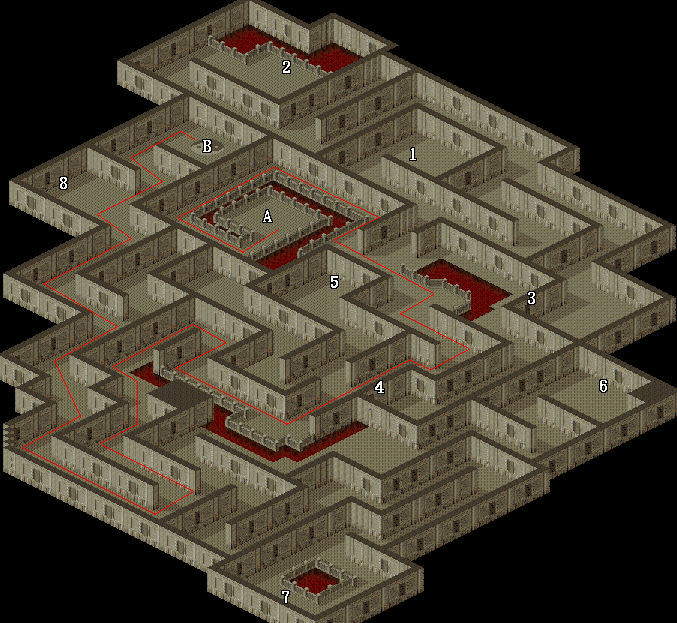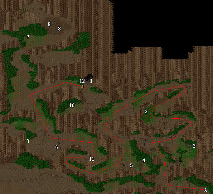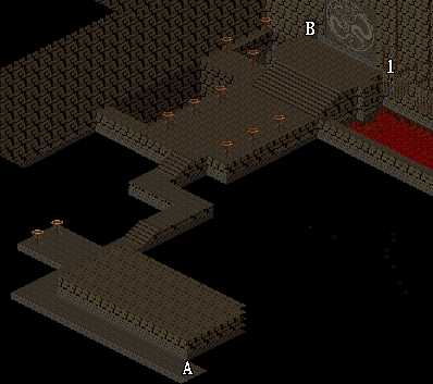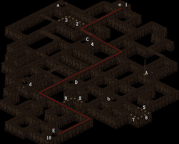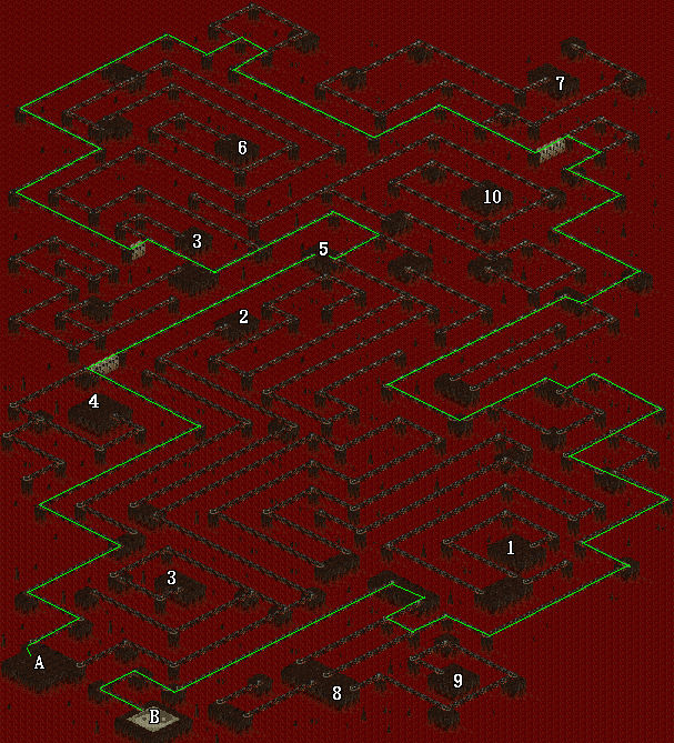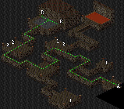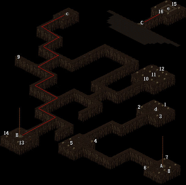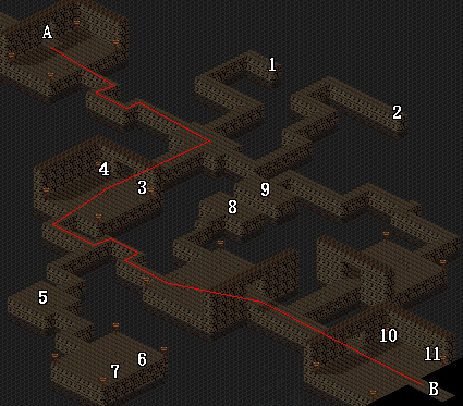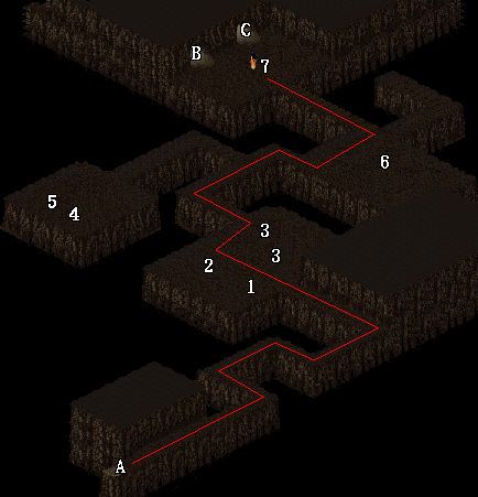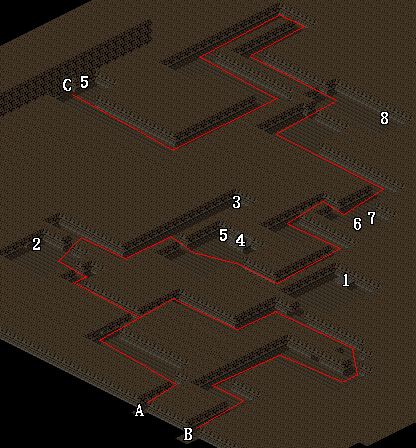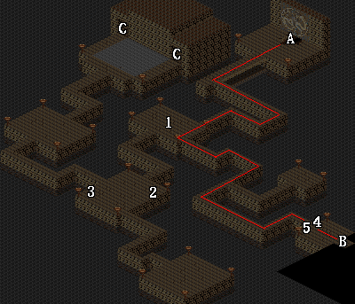 | A.地下宮殿上層入口 B.地下宮殿下層通道 C.魔獸培養室 |