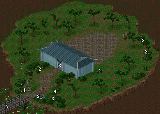 | 1.獨孤劍聖 A.蜀山派前院 B.蜀山派後院 C.丹房 D.蜀山派房間 |