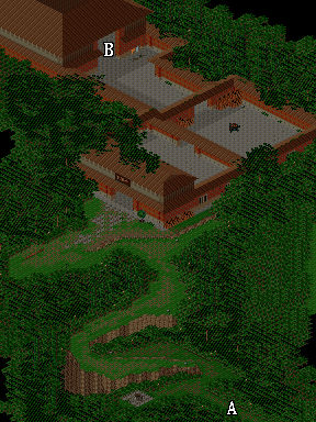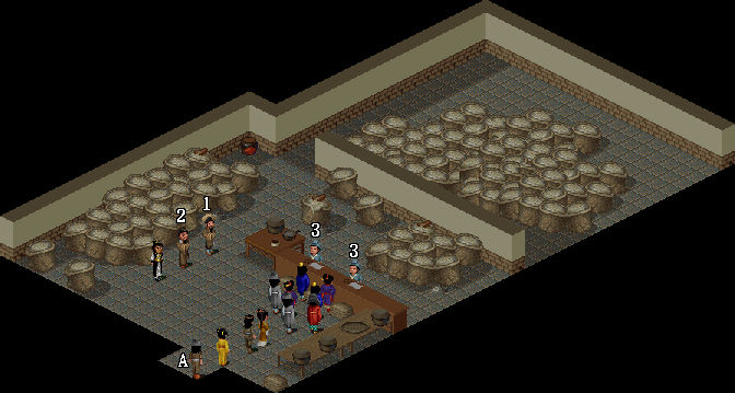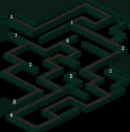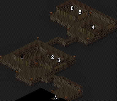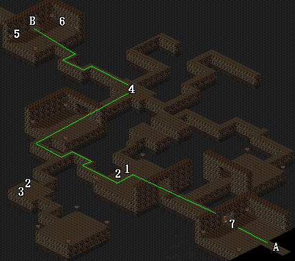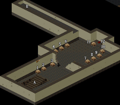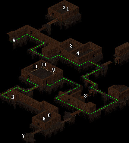 | 1.2000文錢 2.1000文錢 3.3000文錢 4.700文錢 5.900文錢 6.5000文錢 7.石長老 A.地下宮殿下層入口 B.地下宮殿祭壇 |
