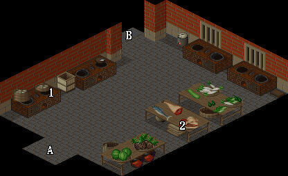 | 1.糯米糕 2.醃肉 A.揚州城(南) B.客棧大廳 |