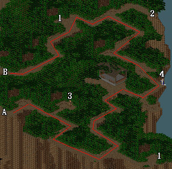 | 1.龍涎草 2.止血草 3.水果 4.鼠兒果 A.桃樹林 B.水月宮 |