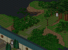 | 1.龍涎草 2.靈山仙芝 A.李逍遙掉落處 B.木道人樹洞 |