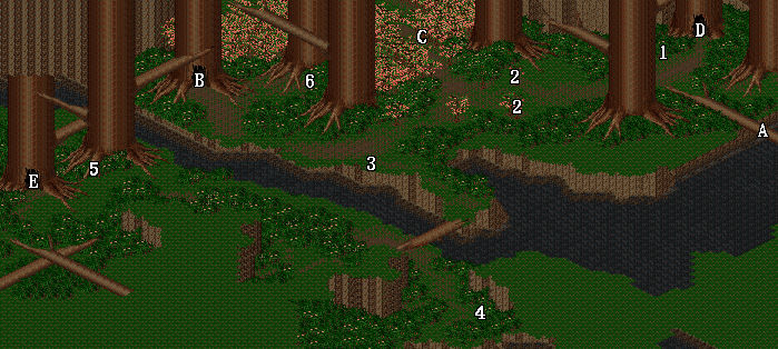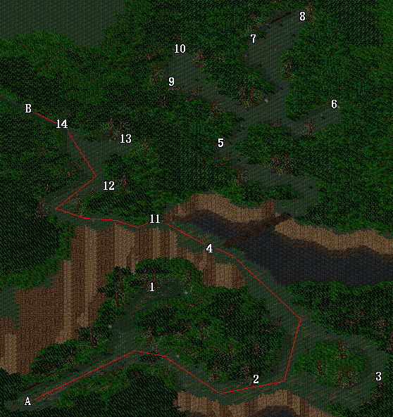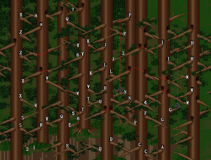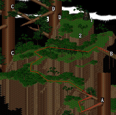 | 1.玉菩提 2.靈山仙芝 3.龍涎草 4.銀杏子 5.試煉果 6.小猴子 7.靈山仙芝(拿不到) A.靈山山腳東側 B.神木林西側 C~a.樹洞對應點 |