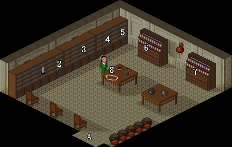 | 1.玉菩提 2.綑仙繩 3.驅魔香 4.鬼針冑 5.袖裡劍 6.八卦鏡 7.龍涎草 8.金剛符 A.第六層傳來處 B.傳送至第四層 |