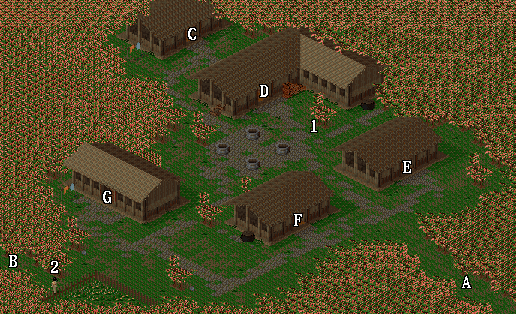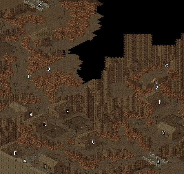 | 1.路人 2.守衛 A.大理城外 B.白苗議事廳 C.火麒麟洞 D.往女媧神殿 E.大理漢人區 F.白苗兵器鋪 G.白苗雜貨鋪 H.白苗民居一 J.白苗民居二 K.白苗民居三 L.白苗民居四 M.白苗民居五 N.白苗民居六 |