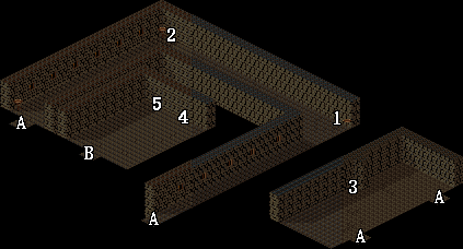 | 1.八仙石 2.玉菩提 3.舍利子 4.金蠶王 5.女媧石 A.地牢下來處 B.水底迷宮後段 |